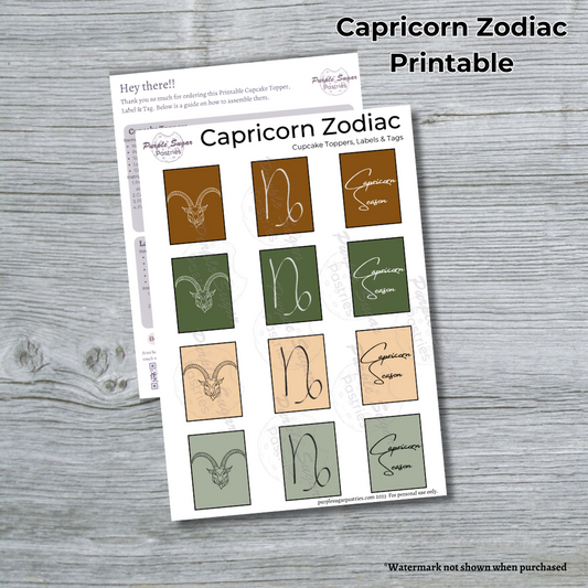 Capricorn Zodiac Cupcake Toppers, Labels or Tags P.D.F. Printable Party Decor