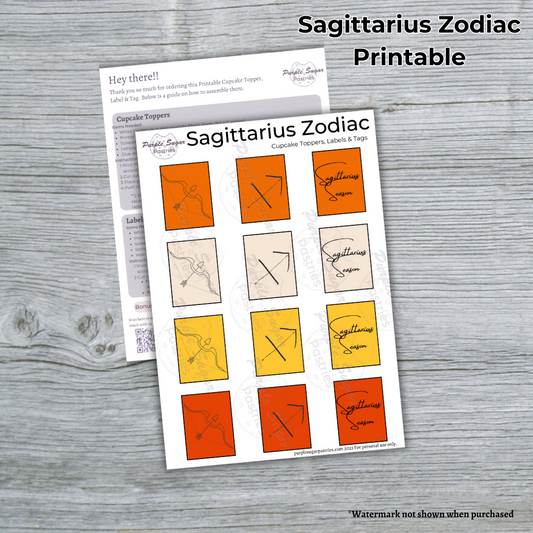 Sagittarius Zodiac Cupcake Toppers, Labels or Tags P.D.F. Printable Party Decor