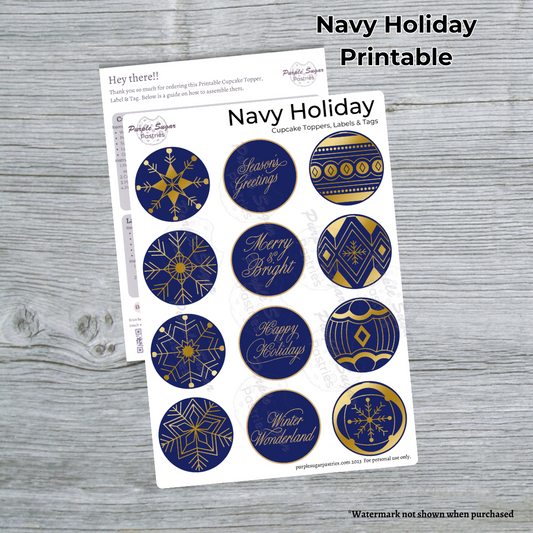 Navy Holiday Cupcake Toppers, Labels or Gift Tags P.D.F. Printable Party Decor