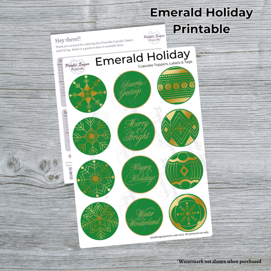 Emerald Holiday Cupcake Toppers, Labels or Gift Tags P.D.F. Printable Party Decor